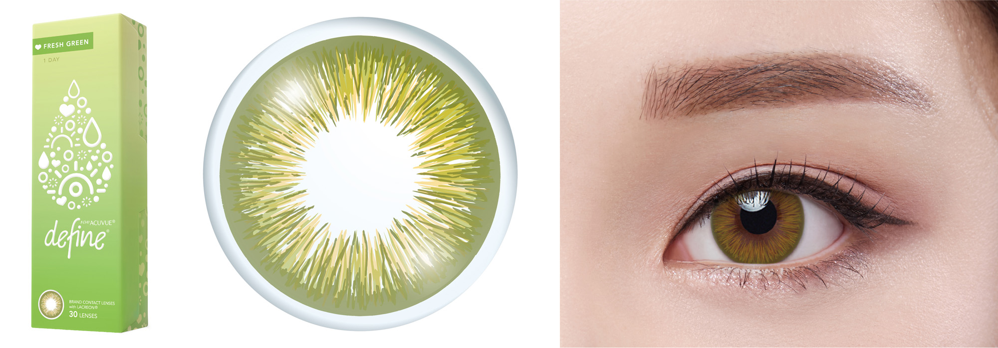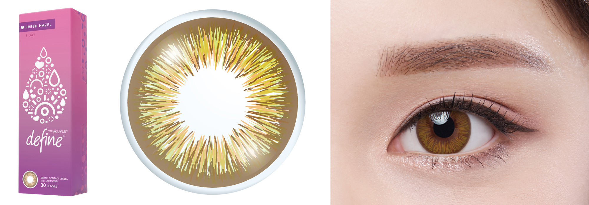 當然,Color Con最重要的是炫目色彩,Define Fresh系列的顏色靈感源自大自然,而且專為亞洲女性眼睛設計,配合更高清的手繪花紋,比一般Color Con更細緻炫目,令你的眼神更閃爍迷人。而除了4款現有顏色,最近更新增琥珀榛、森系綠2款秋冬新色,讓你透過美瞳細節,呈現不同氛圍,輕鬆打造更具質感的形象: