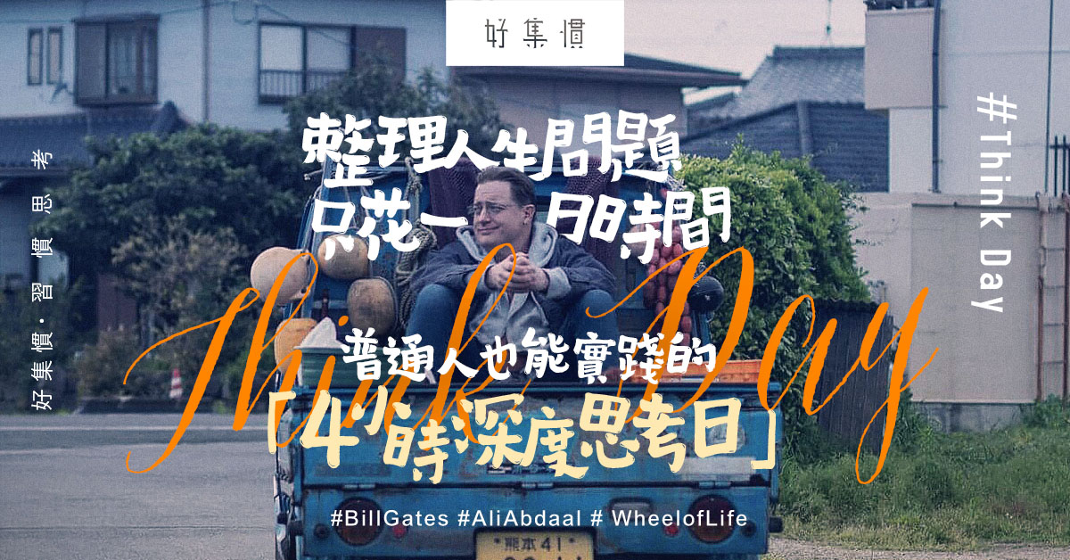 英國醫生 Ali Abdaal 轉換跑道成為企業家再轉型成 YouTuber,他建立個人頻道教人提升自我,他將比爾.蓋茲著名的「思考週」,濃縮為僅需四小時的深度反思儀式,最基本的理念是只要短暫抽離日常,就能梳理自己,好好生活下去。
