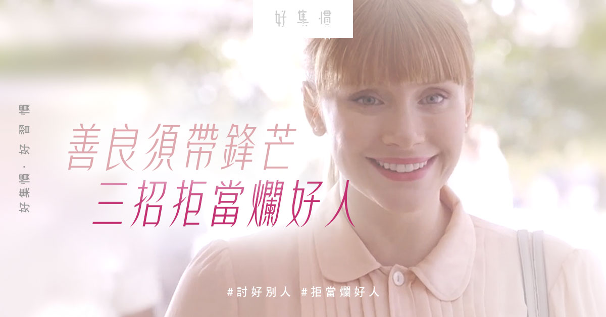 很多時好人並非一開始便是爛好人,而是因為善良被有心人利用他們不懂得拒絕的弱點,慢慢便愈退愈後,最後被人擺佈。別以為這些「舉手之勞」無傷大雅,當上司開始給你更多的工作量、同事明目的進行卸膊操,若因著別人的目光被排擠,一味以「我應當要⋯⋯」去迎合,結果反而得不償失。起初的一句「無所謂」,會令別人覺得你四處迎合他人,逐漸輕視你,以後便把最難頂的事都塞給你,到時你失去自由又得不到尊重,何嘗不是得不償失?相反,在適當的時候拒絕,旁人反而對你有顧忌,不敢在你身上苛索什麼,這才是保障自己的方法。緊記,一味的「Yes Man」不會為你帶來好感,分清別人與自己的責任。善良應該適時地發揮,而非被濫用。