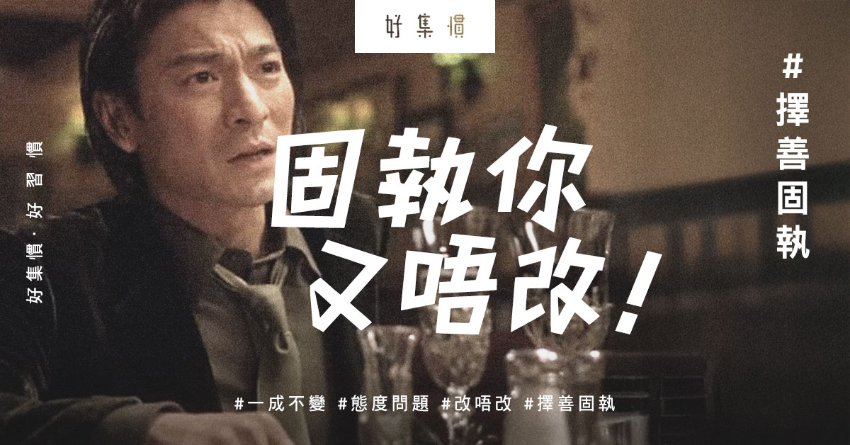 最近男朋友鬼上身(《江湖》劉德華至真),嗌親交都說:「講你又唔聽,聽你又唔明,明你又唔做,做你又做錯,錯你又唔認,認你又唔改,改你又唔服,唔服又唔講」一句講哂,就係話我固執。但我就話那不是固執,是堅持。後來,我們竟然認真討論:固執有沒有得救? 當我們說一個人固執,他正是堅持己見,不想改變,所以稱之為固執。這樣固執的人,能不能改變?