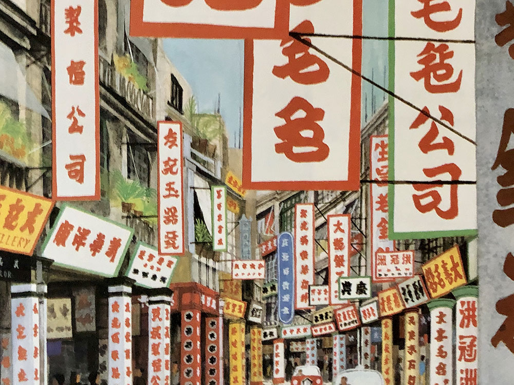 畫家跳上纜車,便寫道:「跳上車程8分鐘的山頂纜車,平面的香港地圖立刻化為嘆為觀止的美麗實景。」