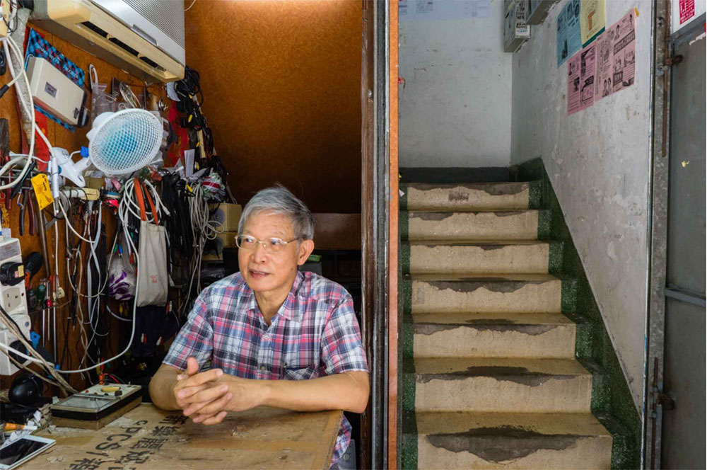 30 多年前,香港的電子工業興盛,當時是電子廠工人的白先生看準時機,便憑自己一門手藝自立門户。因自己也喜歡看電視的關係,所以也開始了修理和回收電視這生意,不經不覺已經在土瓜灣經營了三十多年。現在位於榮光街的樓梯舖則是在1997年開業。