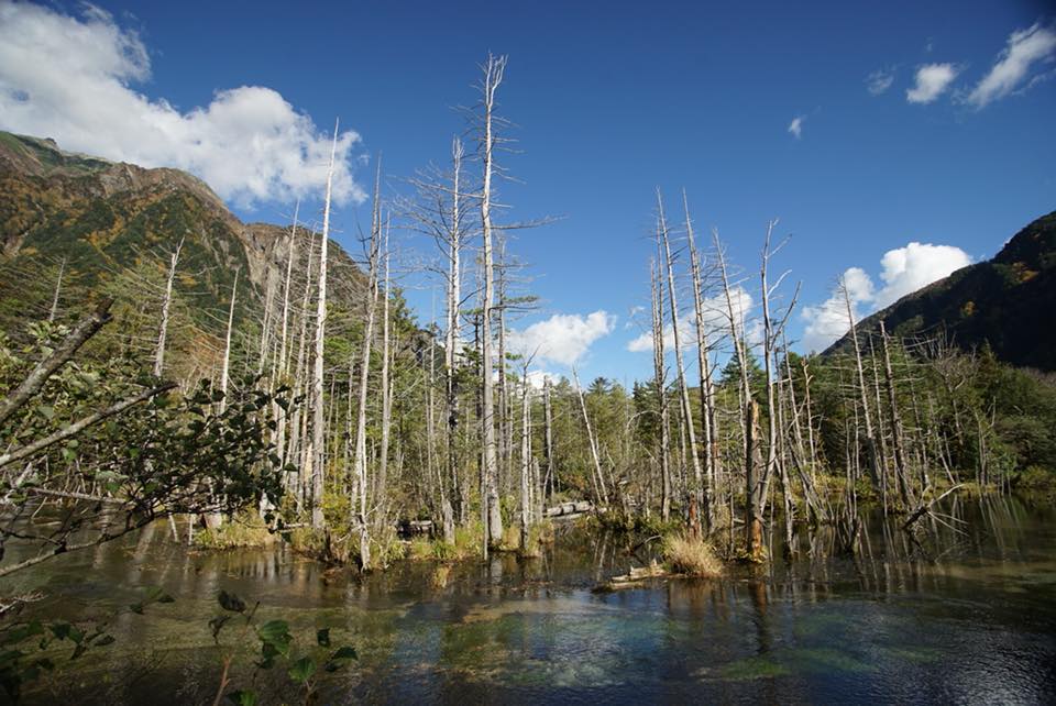秋遊上高地,健行登山者眾,我為初遊選了最簡單的健行路線,不過也足夠令我流連忘返。上高地的健行路線主要分三段,從位於交通樞紐旁邊的河童橋出發,以三小時作起跳,可往下游方向走大正池路線,或往上游方向走明神池路線。河童橋下的梓川,水質清澈無比,於橋上可遠眺壯麗的穗高連峰。大正池波平如鏡,水木明瑟,明神池毗鄰穗高神社,供奉鎮守整個北阿爾卑斯山脈的海神,山輝川媚下仍然和風滿溢。最後還有上游的德澤橫尾路線,需時更長,約需大半日,為登山者基地。登山路線則更廣更多,可通往槍岳、奧穗高岳等高聳入雲的北阿爾卑斯群山。