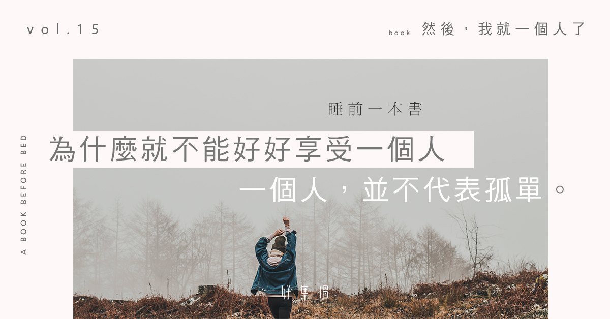 三十二歲時,她離了婚,成了一個人,然後她寫下了這本書《然後,我就一個人了》,用最坦誠的語言,紀錄自己在日復一日的一個人生活裡,逐漸和自己達成和解的過程。