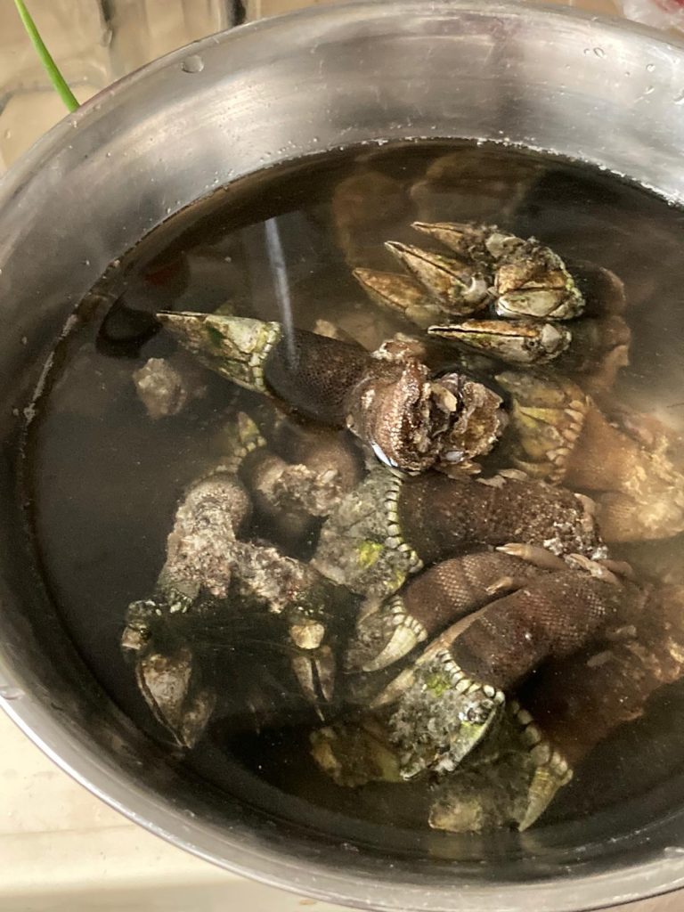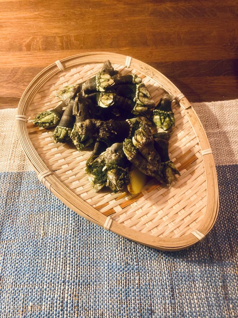 如果魯迅先生說「第一個吃螃蟹的人是很令人佩服的,不是勇士誰敢去吃它呢?」我卻覺得用來形容「鬼爪螺」可能較為恰當。因其外形,有人叫鬼爪螺,也又有人叫狗爪螺,牠屬於節肢動物門、有柄目的藤壺科屬動物,又名「龜足」(Capitulum mitella),英文是 Gooseneck Barnacles,學名 Pollicipes Pollicipes,特意寫出它的英文名字和屬科,因為在歐洲地區,Gooseneck Barnacles 是矜貴食材,價錢動輒可能 50 歐羅 1kg,更成為米芝蓮餐廳的食材。