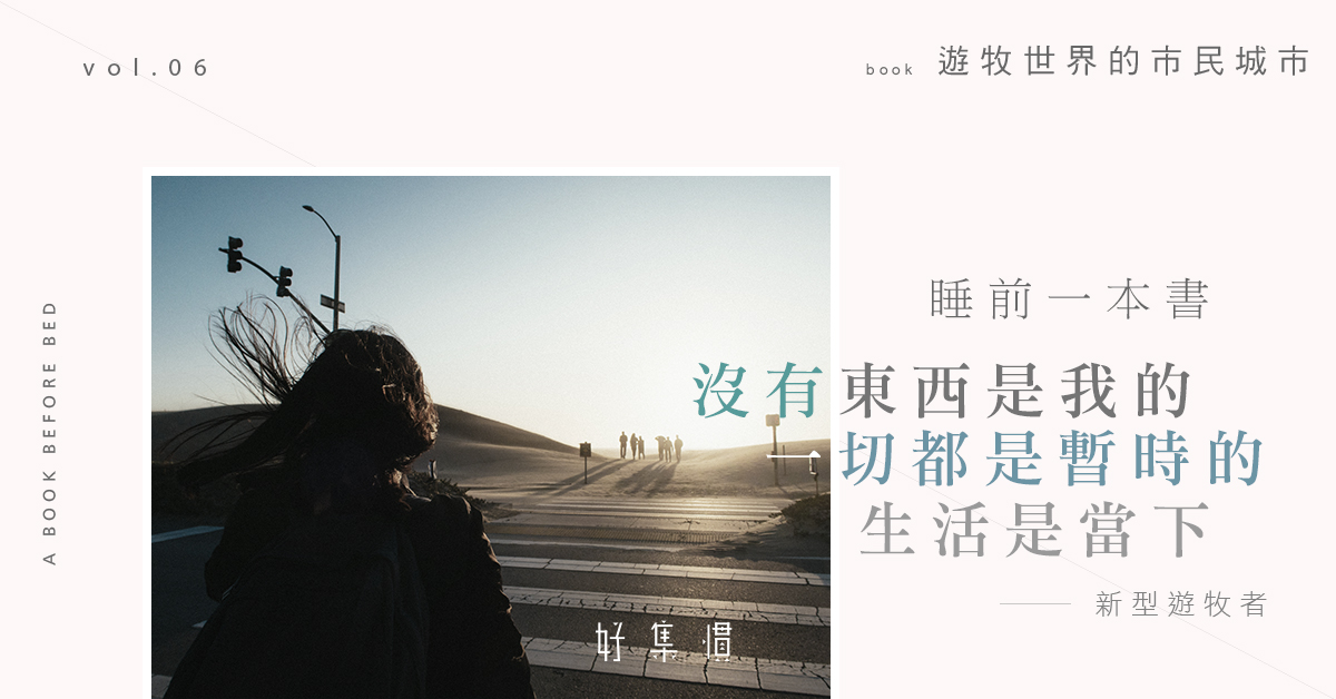 書中引述「成為遊牧(Become Nomad)」網站創辦人的話:「我的名字是依萊。我從2010年以來,一直是遊牧者,不斷地改變居住的家和城市。2010年之前,我有一段穩定的關係,養了一隻貓,還是會計事務所的後起之秀。但那之後,一切都改變了。我不斷地搬家,居住超過三十個國旅行超過六十個以上……遊牧的生活方式相當符合我的以下理念:沒有東西是我的,一切都是暫時的,生活是當下,而且並不嚴肅。」