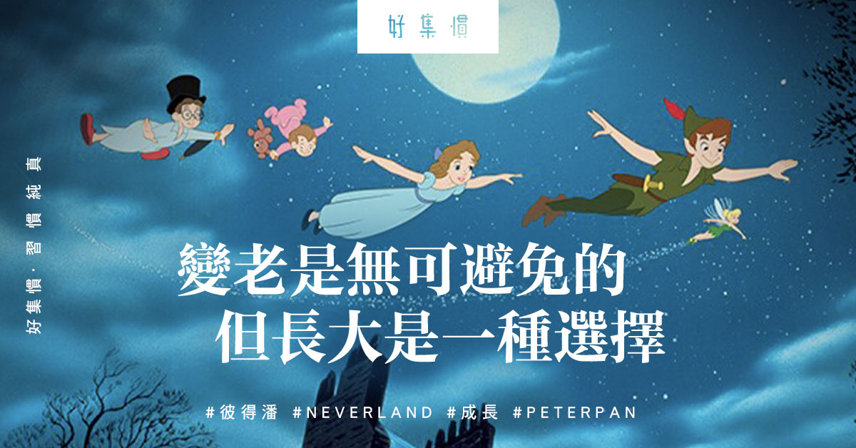 「只要孩子們是歡樂的、天真的、無憂無慮的,他們就可以飛向永無島去。」長大當然無法避免,人人都會逐年老去,要面對真實世界。但故事一句觸動讀者:變老是無可避免的,但長大卻是一種選擇。不要老來後悔,好好選擇自己如何長大吧。