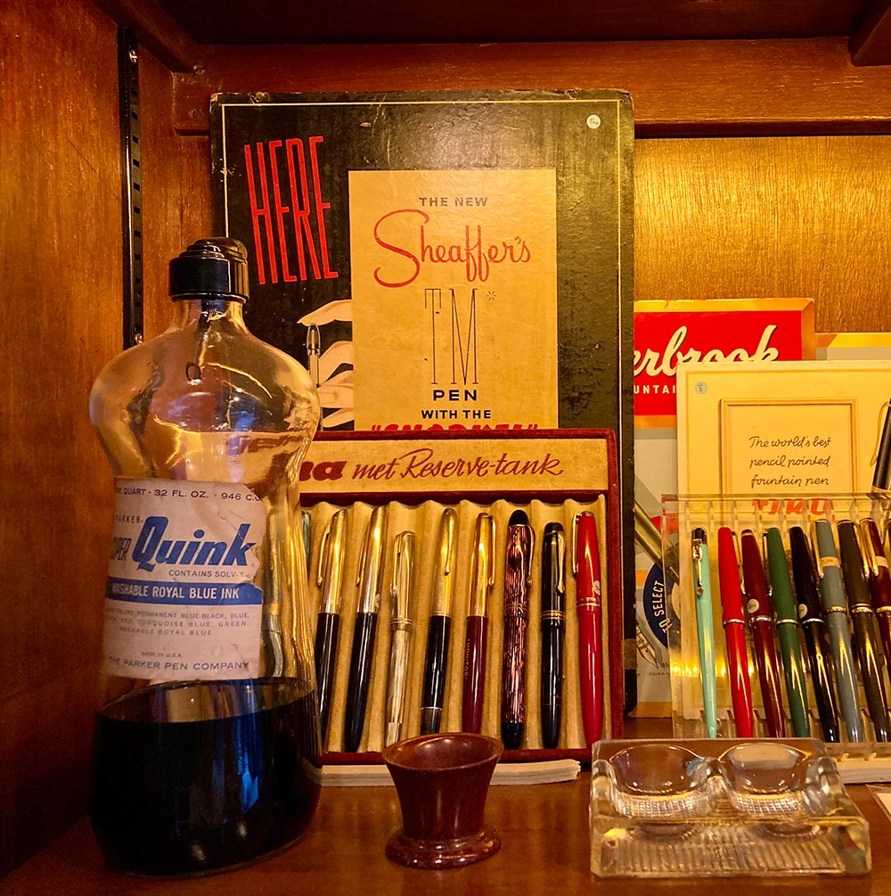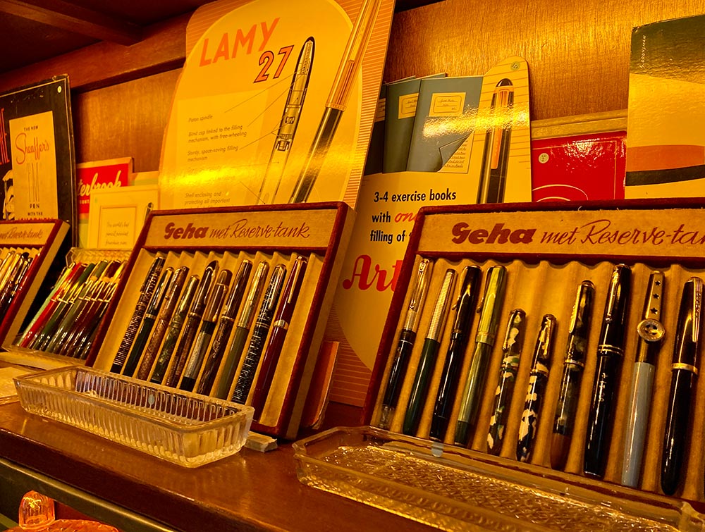 說是百貨公司,也許是陳米記的一種幽默。這裡賣的多是文房四寶,特色都是六、七十年代精品文具。像燕子牌鉛筆、LAMY墨水筆、德國Gera 墨水筆、塑膠鉛筆刨等,瀰漫着一種懷舊而浪漫的風情,也反映了陳米記的品味。最有趣的地方是這個小小鐵皮箱內燈光昏黃,陰暗的空間好像藏着什麼珍貴東西一樣,帶著神祕的氣質。
