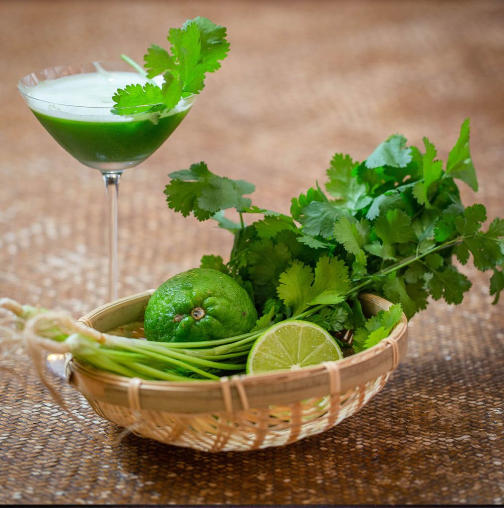 訪問當天, Glass Gardener兩位主理人Henry和Tony即場調製雞尾酒分享。Tony製作芫荽口味為主的「荽家姐」,用上本地芫荽、西芹、青檸、菠蘿汁調製。入口有清新的青檸和菠蘿味,芫荽味有存在感卻融和,出奇竟沒有明顯的西芹味。他解釋,調酒世界會分解當中的元素,「為了配合蔬菜風味,我將西芹搾汁後加糖做成糖漿,味道會平衡點,有時我們需要根據特性,調整用那些材料。」