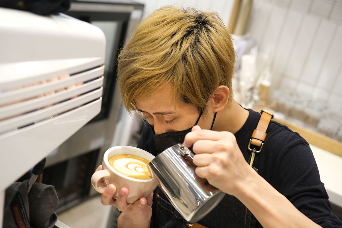 導師細心傳授如何以心代眼沖調咖啡的竅門,例如判斷倒奶份量時,他們會以觸覺感受12oz的重量,以及60至70℃的溫度。至於打奶,則利用聽覺傾聽蒸氣棒發出的聲響,聲音沉實代表牛奶有機會過熱,若尖銳就意味蒸氣棒可能太靠近奶勺內壁。至於拉花,他們會在心中默數,隨着節奏畫出6、7個圈,若果夠運就能拉出似樣的心形。