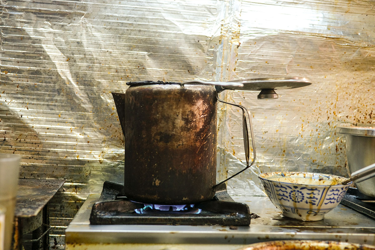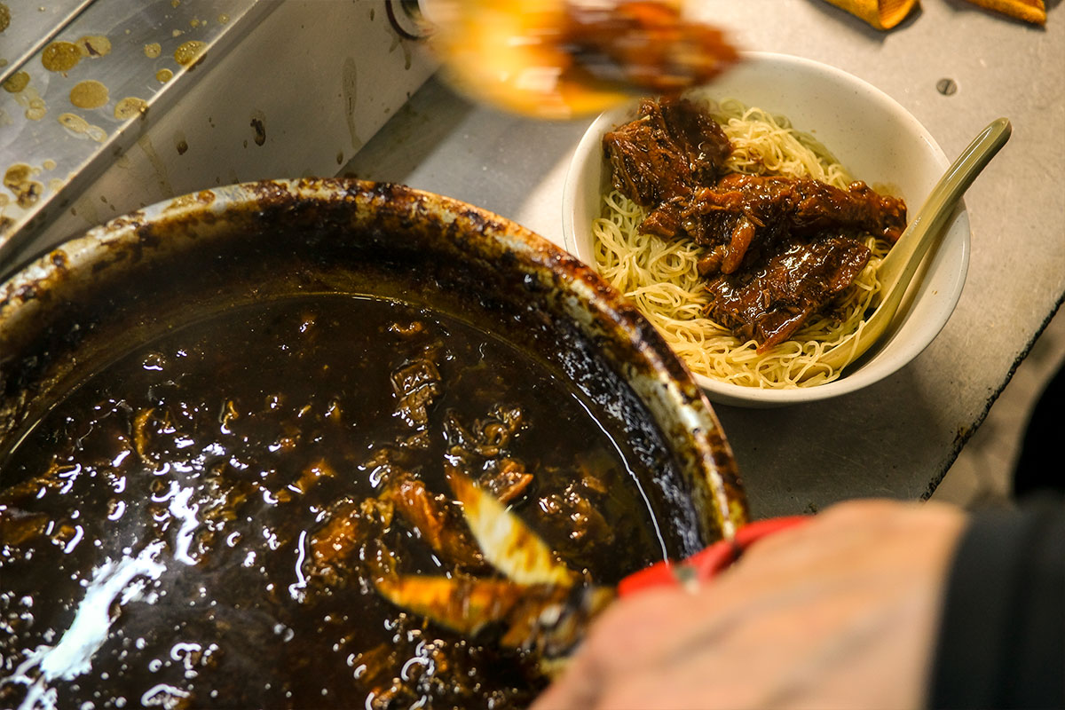 坊間多煮清湯腩,外父卻教落爆香蒜頭、蔥頭、薑,下磨豉醬,炒得濃郁順滑。最初火候不準,味道偏差,炯明就靠口傳古法鑽研改良。大塊牛腩,烚熟切件,慢火燜四小時。老街坊牙力不夠,就煮軟腍點,讓老饕吃得滿足;自詡沖奶茶有心得,又加入餐牌。他一時攥勺攪醬,一時舀湯拉茶,像施展絕技:「我當工作是娛樂,不然很辛苦。」他開懷地自嘲,這行難賺錢,無心就別做,會悶。