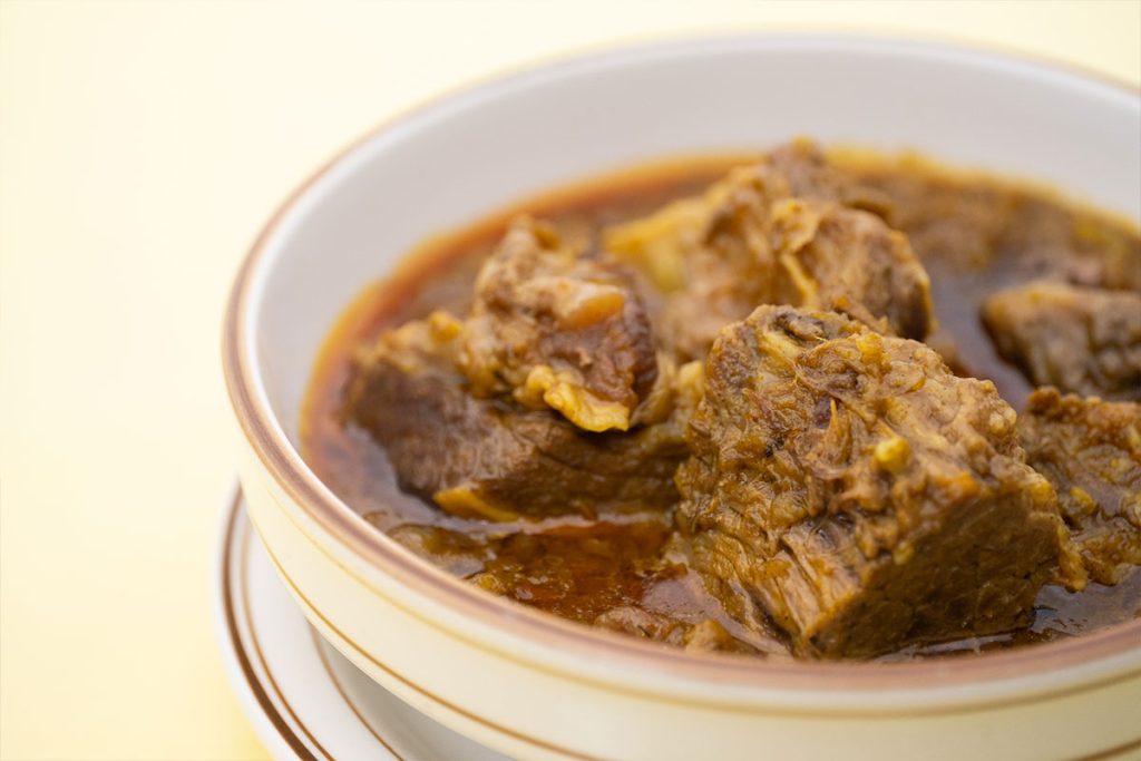 店子牆上大剌剌寫着:「此店咖喱精品,乃阿龍匠心泡製,真材實料,辣而不嗆,補而不燥。」為什麼強調補而不燥?「不就是巴基斯坦咖喱的最大特色?!不像印度或泰國或馬來西亞咖喱愛加入椰奶,巴基斯坦咖喱只用香料和大量洋葱,咖喱的香甜全來自洋葱的味道;還不止,香料和洋葱以牛骨湯熬足四小時,才能做出如老火湯底的咖喱膽汁,所以才補而不燥。」