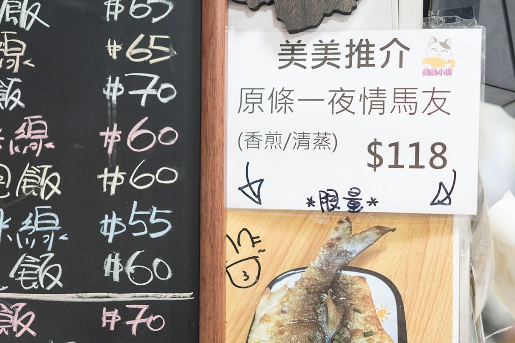 「壞消息」一則。當你以為餐廳是一間富麗堂皇的海鮮菜館,美美小廚不過是一間茶餐廳;當你以為餐廳門外放滿海鮮魚缸養着什麼東星、石斑、三刀、龍蝦、鮑魚等名貴海鮮,美美小廚的午餐菜牌是:清蒸鹹鮮一夜情馬友、面(麵)醬撻沙、豉汁蒸雞籠䱽、冬菜碎蒸懵仔(魚仲)等等。如果你對雞籠䱽、懵仔、馬友也略知一二,證明你也是「為食貓」、識途老馬,這些大多是貨真價實的香港常見海魚,如果你未聽過,Maymay會坦白告訴你:這些大多都是「下價魚」,都是漁民最愛吃的海魚。「講真,如果漁民捉到靚魚、大魚(如東星、石斑、三刀等),係都攞去賣啦,賣得好價錢,自己食寧願食平魚;但話說回來,平價魚又未必唔好,也一定沒有什麼人養,大多是海魚。」這是水上人的吃魚心得。