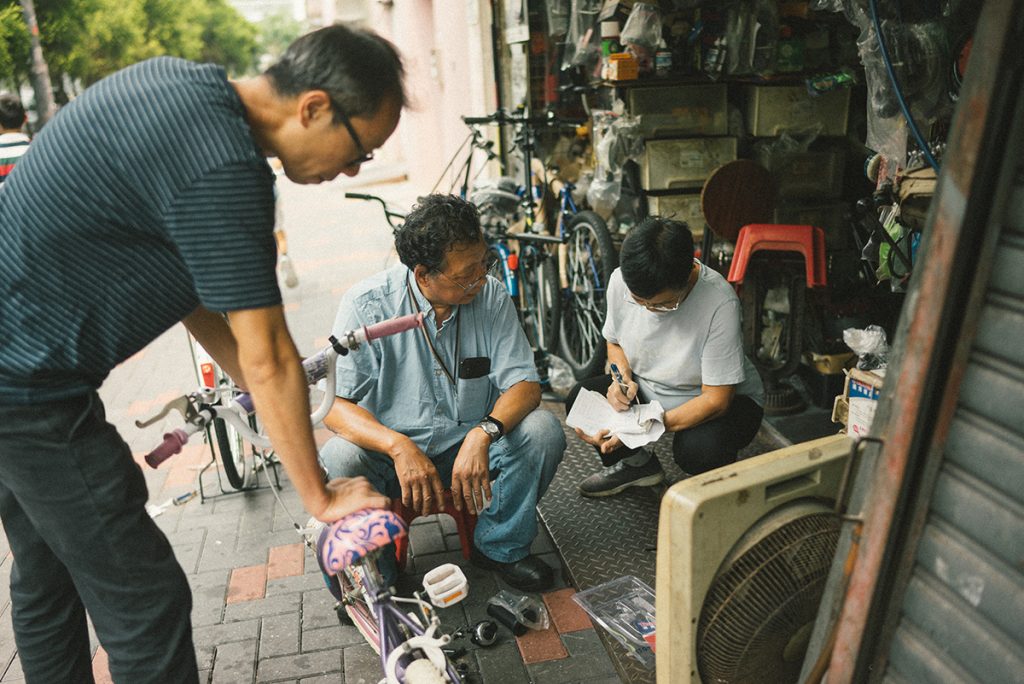 鍾生工作時,鍾太便默默在鍾生身旁,只聽鍾生說一句,「報紙。」鍾太便立刻把所需物品遞上;鍾生一邊耳朵聽力稍弱,有時聽不大清楚,鍾太耐著性子把句子重複數次,非常有默契,「夫妻檔就是如此,平時我叫她拿這樣拿那樣,其實我也不知道放在哪裏,所以客人說,我們很夾。」單車,不單是「搵食」工具,還維繫著一個家庭,一個社區。