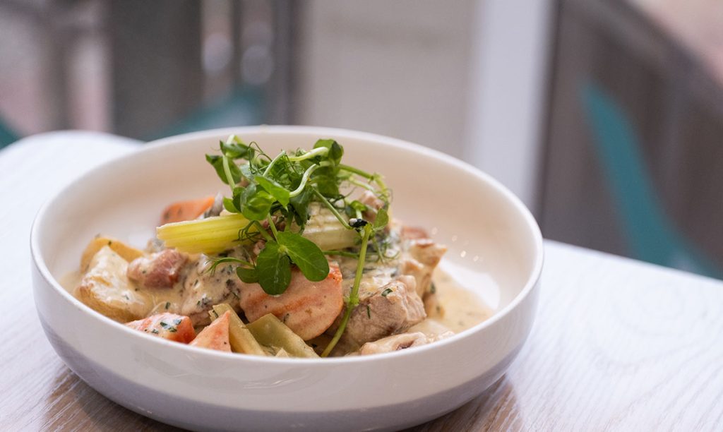 大埔大元邨街市是平民街巿,魚蝦蟹雞鴨鵝菜心芥蘭大白菜煲湯靚料平靚正,畢竟是公屋街巿,照顧街坊居民起居飲食生活所需,偏偏在街巿一隅角落有一間Goldy Café(唐源) ,雖不能說是高級餐廳,但也算是屋邨裏的小清新,就像外國的小酒館。打開菜牌是一份驚喜,法式洋蔥湯、忌廉芝士三文魚貝果、香蒜白酒蜆肉意粉、法式白酒忌廉燴雞和法式紅酒燉牛肉伴牛油飯,一派歐陸菜式風情;據知,大廚曾在星級酒店擔任行政總廚,也曾於幾家會所工作,履歷和來頭都不少。