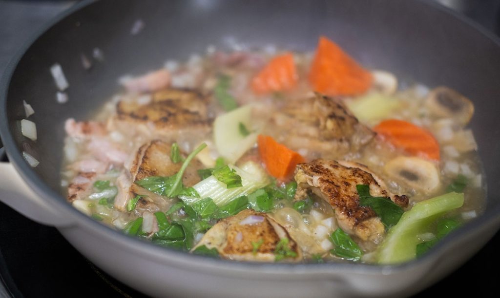 「首先,一定要堅持傳統法國菜的烹調方法。我自己是西廚出身,對法式烹調很有信心。」就像一道洋蔥湯,先以紅白洋蔥加牛骨熬湯足足四小時,最後放上半溶芝士麵包,入口濃濃洋蔥香甜,滿滿的法式風味;又像另一道法式白酒忌廉燴雞,雞肉煎香,加入洋蔥、甘荀、白酒、忌廉慢慢燴稠收汁,口味正宗。跟酒店餐廳有什麼不同?其實在於食材。「我在酒店或會所會用上法國雞或新鮮嘉美雞,但這裏會用冰鮮雞,將貨就價,但用心烹調卻是一樣。」怪不得,這裏的菜式大多百多二百元有交易,百分百街坊法國菜滋味。果然,Goldy Café的味道在大元街巿贏了不少街坊熟客,更有人找Ken來做私房菜,「一行12人每人花500蚊budget,我便為他們加入煎鵝肝等貴價菜式。」