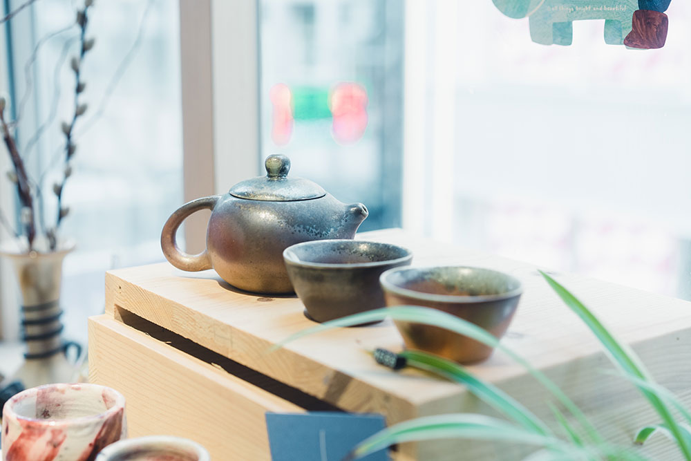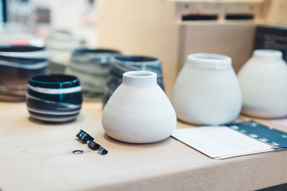 除了文具,店裡也賣本土製作的陶藝品。