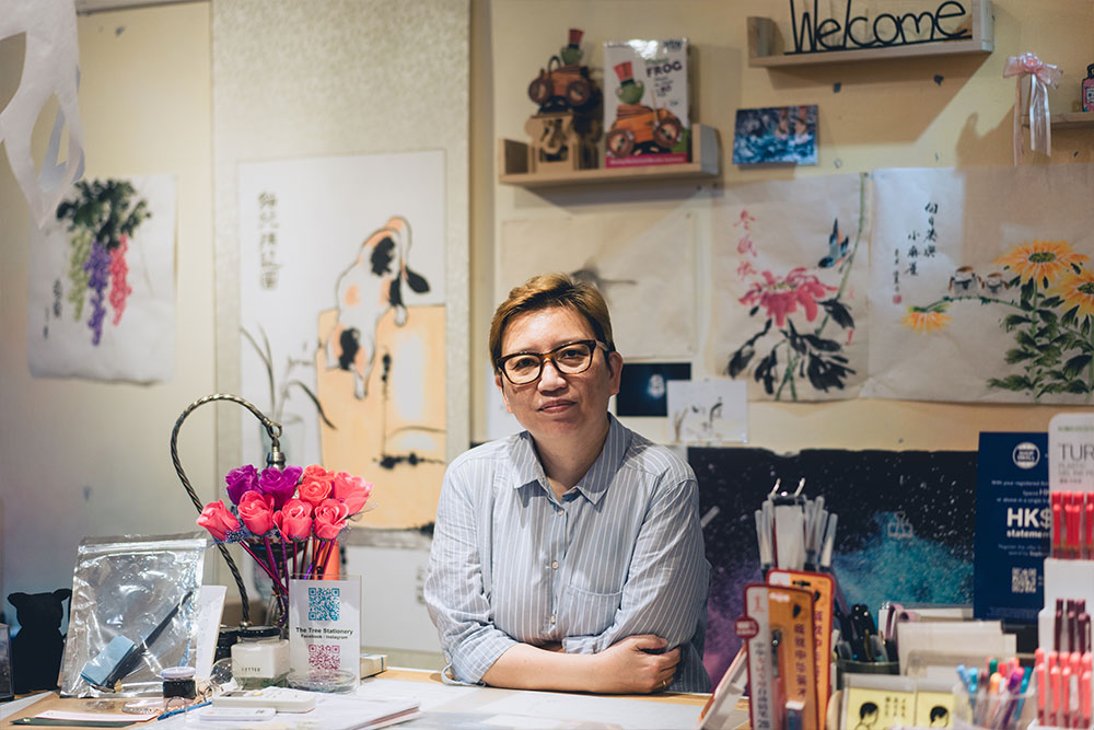 走上唐樓,推開玻璃門就見一頭短髮的 Pauline。旅行時喜歡逛小店的她,一直也想在香港開間文具店,支持香港出品。「大樹好遮蔭」四年前,見舖位出租,就辭去了本來的工作,正式成為店長。