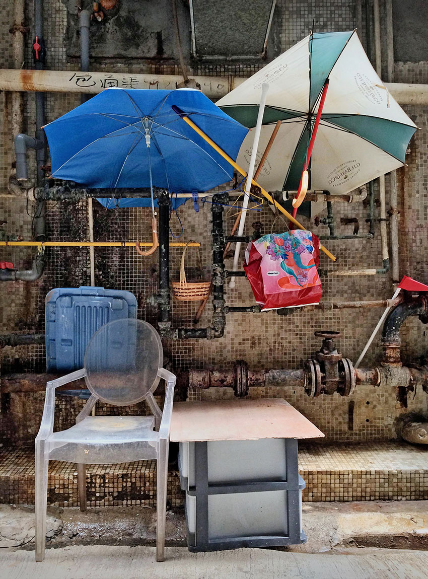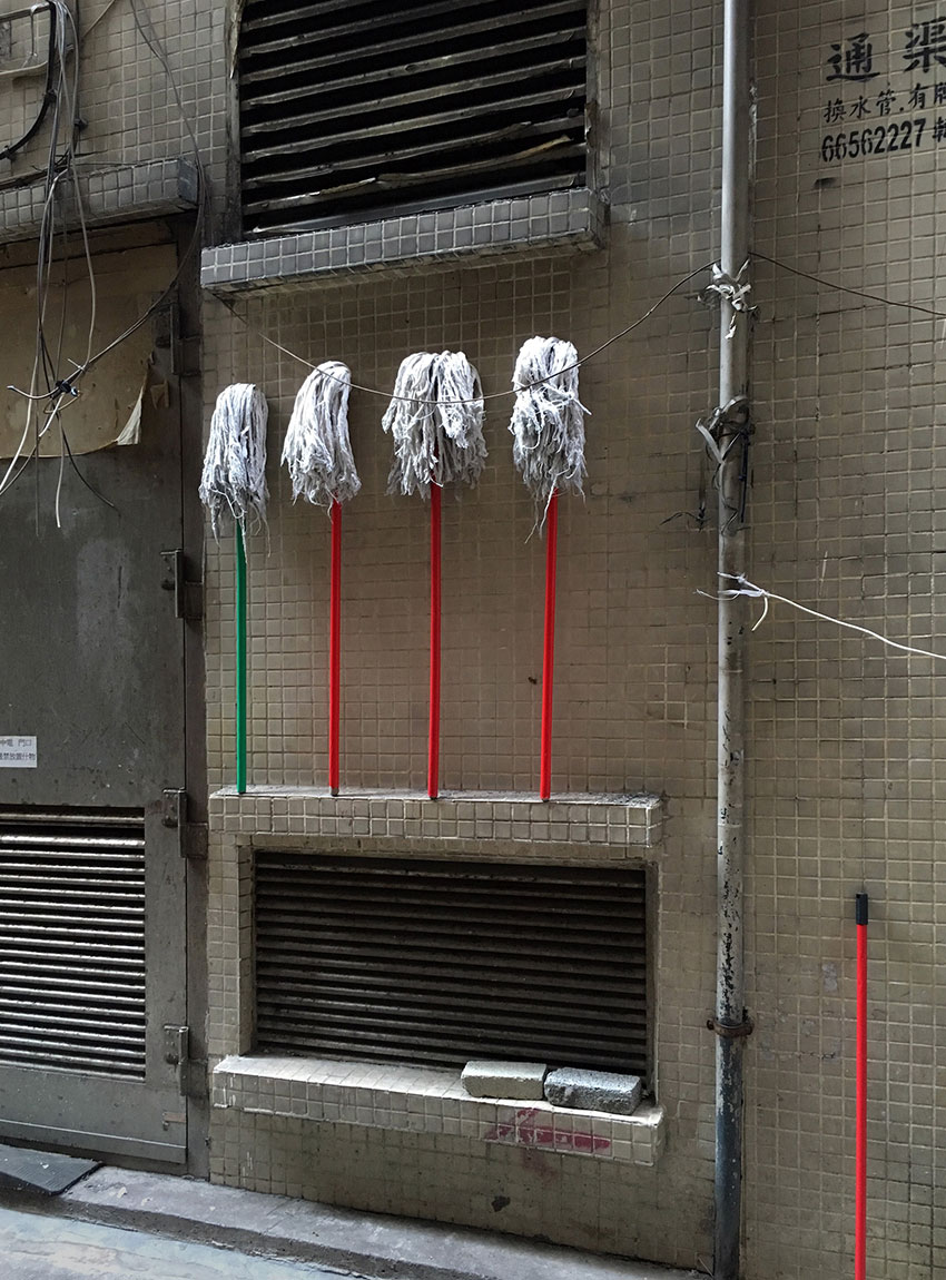 Michael Wolf之所以為後巷着迷,只因他發現後巷正是香港草根文化最鮮明的景緻。它是清潔工友、廚師,甚至是打工仔的樂園: “This is where workers, cleaners and cooks organize their tools or escape to for a little cigarette break. It might seem mundane but it presents an authentic slice of Hong Kong’s grass root culture. In my opinion they should be nominated as a heritage site.” 如Michael Wolf所言,香港後巷,絕對是世遺。