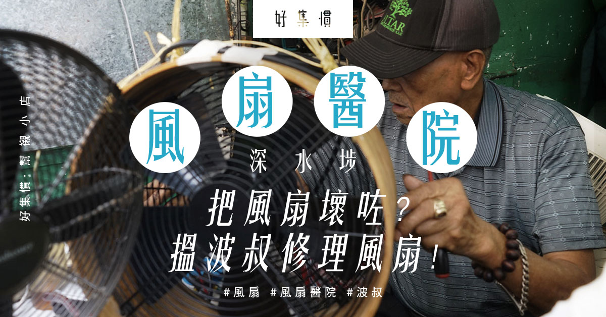 言歸正傳。當我上網搜尋「修理風扇」,竟然找到深水埗景隆街波叔,被譽為「風扇醫生」,今年八十有四,修理風扇已有四、五十年經驗。我家住香港島,乘車到深水埗要$11.8,擔着風扇也足足走了20分鐘。去到「風扇醫院」(那是波叔的招牌),醫院其實是一間鐵皮檔。