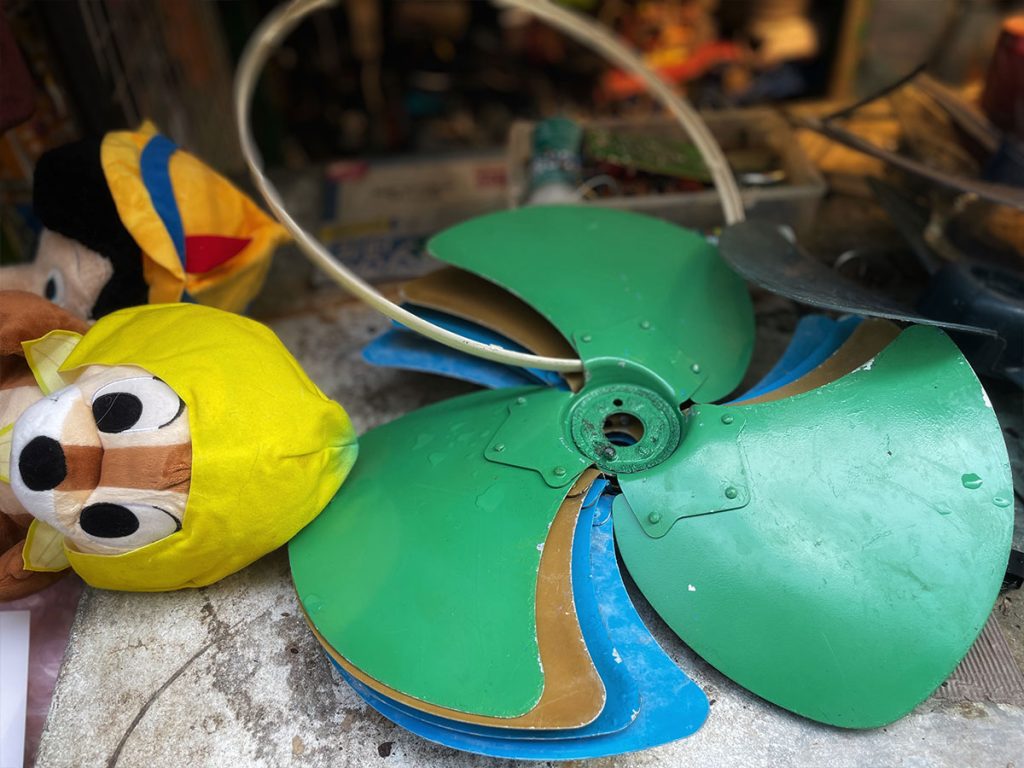 一小時後回來,波叔說:「風扇已修理好。」一試,竟然動也不動!波叔喃喃道:「無理由㗎,明明搞掂。」於是又拆開摩打,拿起電錶量量電流、駁過線。這一次,風扇終於「伏」、「伏」、「伏」作響,我的風扇重生了!這時,才問起波叔的故事。原來波叔以前做裝修工程,一次工傷令他不得不轉行,結果跟了維修電器的老友學修風扇,邊做邊學。那些年(八十年代)哪有冷氣,人人都用風扇,「唔好睇少,其時一把風扇都要幾百蚊,奢侈品來的。」所以,若遇上風扇失靈,人們還是拿去修理。以前的風扇結構不會太複雜,就是摩打、電容和扇頁。「你把風扇電容壞咗,我幫你換了粒『樂聲』電容,好嘢嚟㗎!仲有,你係咪自己拆過扇頁?你裝得唔好,『kick住、kick住』,幫你裝番好;還有幫你唧了機油,肯定大風過之前。」波叔牙擦擦地說。「我把風扇係咪好嘢?」我問。他冷眼看我,只笑了笑。