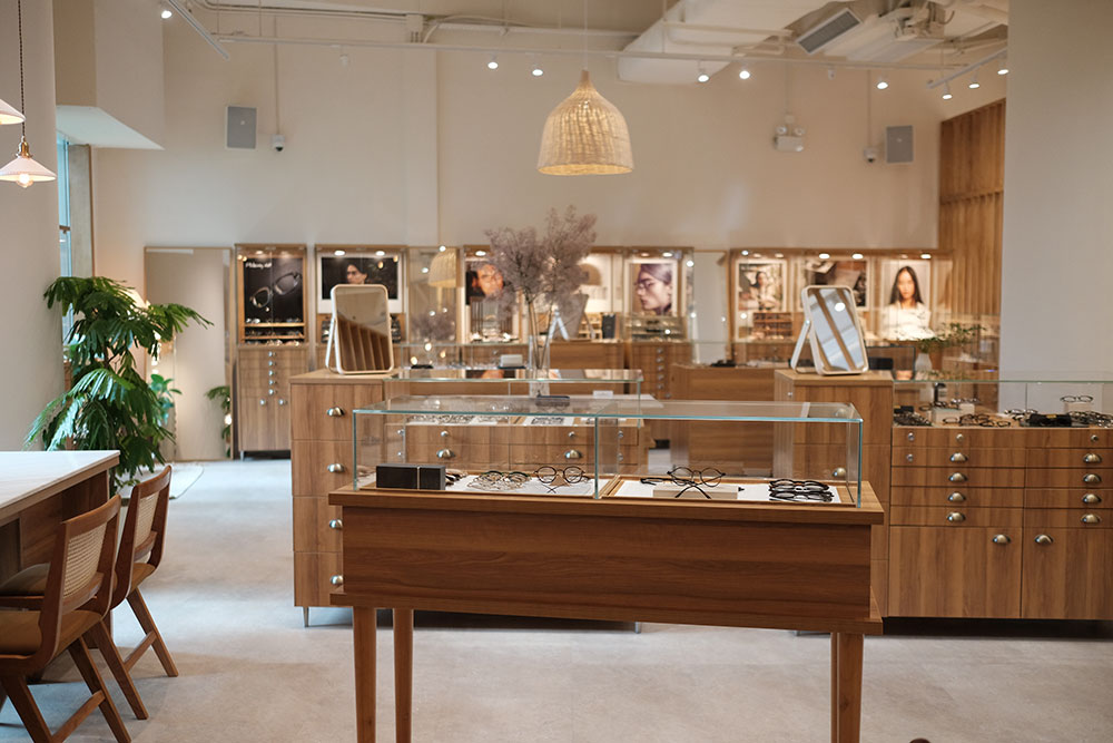 店內把一副副眼鏡放在木櫃裡展示著,每一副都有種獨特的美感。
