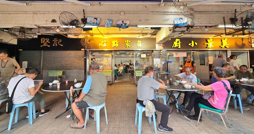 美景小廚位於石硤尾邨街市及熟食檔平台,餐桌設置在露天平台外,位置顯眼;所以,當我看到有KOL拍片標明隱世懷舊露天茶寮,不禁失笑:有幾隱世呢?茶飯已有40多年歷史,在深水埗、石硤尾無人不識,甚至是不少城大學生做功課、蒲完通宵的飯堂,只因美景小廚最大的特色是營業時間:凌晨4時至上午11時。