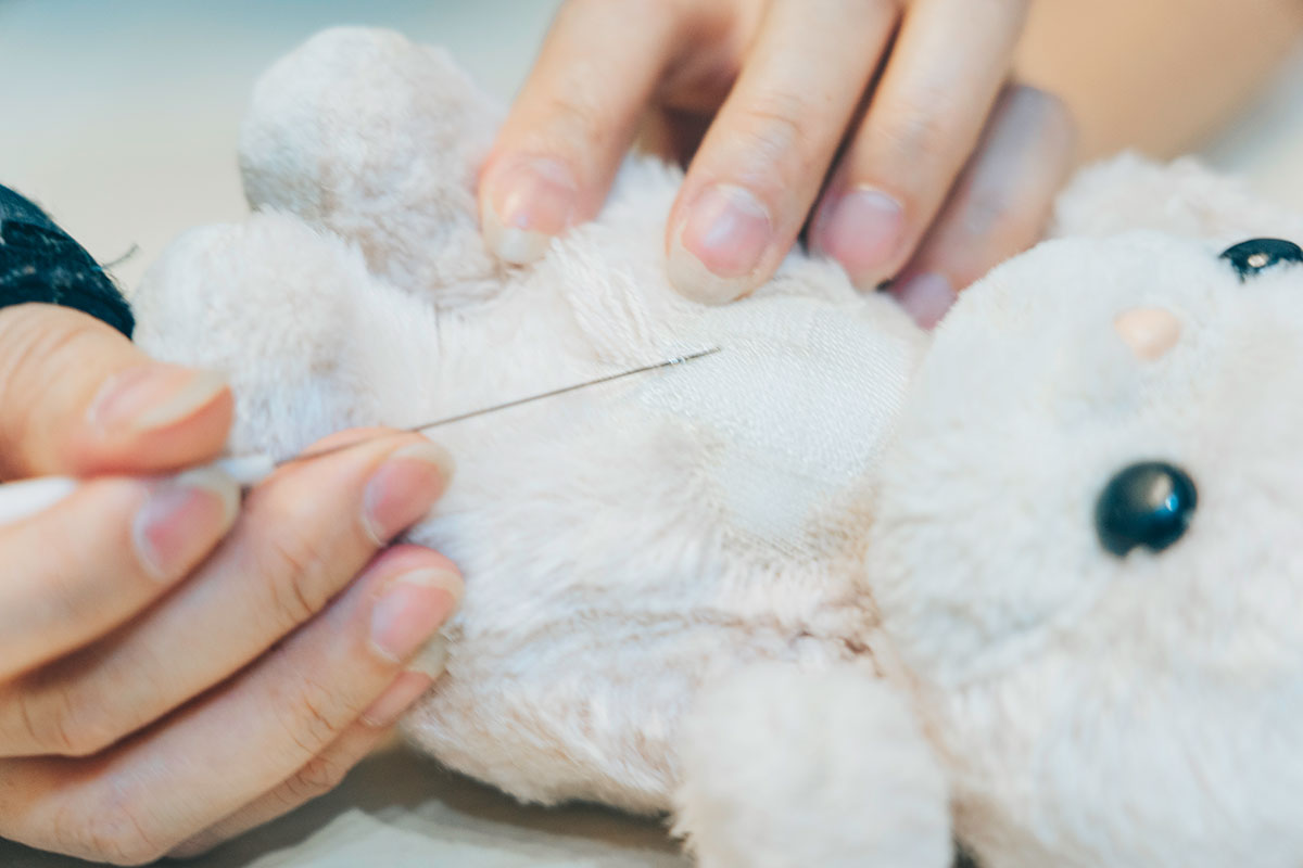 手作功夫急不來,寶姐就曾試過為了一隻年過 60 歲的熊啤啤花上三個月。它八吋大小,頭和手已經斷掉,布料亦十分脆弱。把公仔送來的外國女生表示,年老的爸爸身體大不如前,所以希望透過父親兒時的最佳戰友為他打氣。脆弱的結構讓修補變得複雜,但作為公仔和主人的最後希望,寶姐還是努力地完成了這個艱鉅的任務。