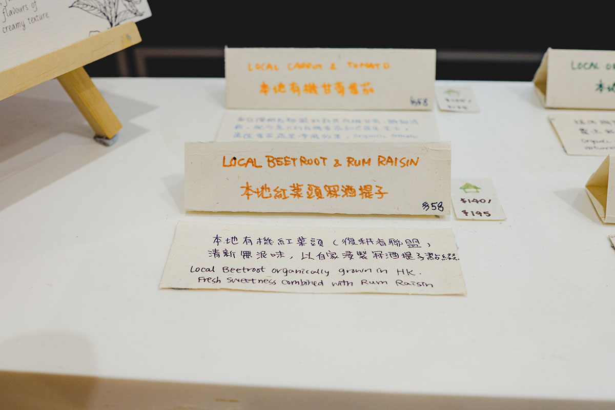 AK 於是抽取合用的食譜,再就地取材。靈感總是源於生活。在開舖前,二人便常購買本地菜,阿魚也曾參與一些 Farm To Table 的計劃。採用本地有機農作物做雪糕,一來選擇多,二來質素亦更有保證。AK 說:「雖然香港無意大利品種,但有其他種得好好嘅!」