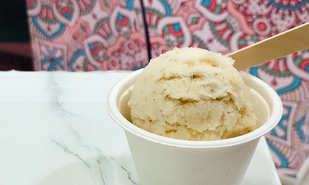 與大型生產的雪糕比較,手製雪糕口感更綿滑,富有食材鮮味,香甜清爽。圖為大嶼山黃皮雪葩。