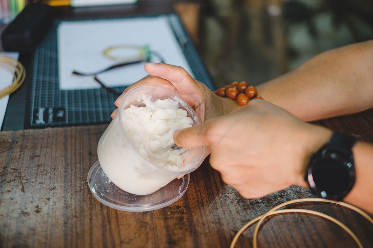 麵粉加水和白礬,慢火攪至半透明起泡,即成漿糊,每個工序,絕不馬虎