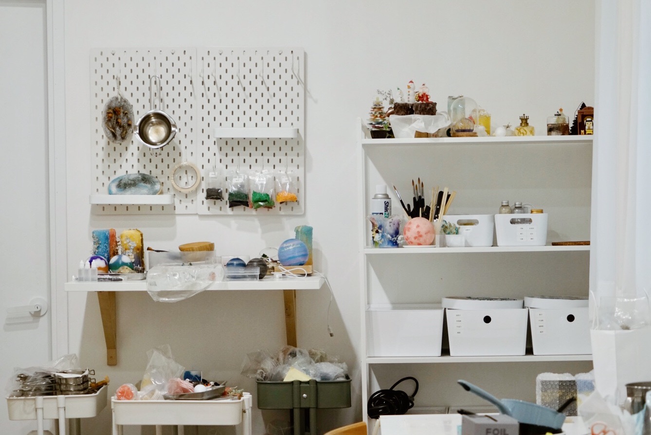 說起與蠟燭的緣份,Catrina 想了幾秒後說:「都幾癲!我無諗過呢樣嘢會出現喺我生命入面。」只因與伴侶 Kilio 旅行時喜歡報讀當地短期課程,因而在日本接觸到手工蠟燭。後來,原是 Playgroup 美術導師的她同時患上抑鬱症及強迫症,為了不影響工作及身邊人,決定裸辭休養。在家中百無聊賴,想起製作蠟燭時的平靜感覺,便取出工具試試。沒料到,因而為生命打開一扇窗。