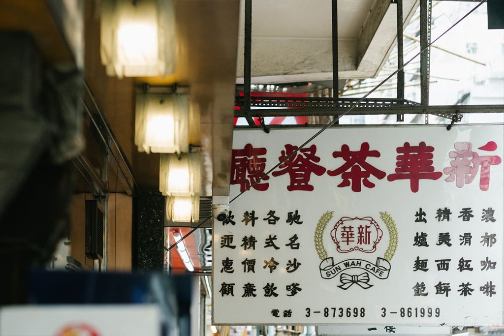第二天早上八時,準時去到長沙灣的新華茶餐廳,典型的舊式茶餐廳模樣,米色膠板牆身,木椅桌卡位,還有二樓雅座,今天還剩下多少?門外放上西餅櫃放滿蛋撻、紙包蛋糕、切蛋等(椰撻未有呀),最搶眼還是那個招牌:新華茶餐廳 精美西餅 出爐麵飽 電話3-873 698 3-861999 ;6~個~字~的~電~話~號~碼~證明是六十年老字號!