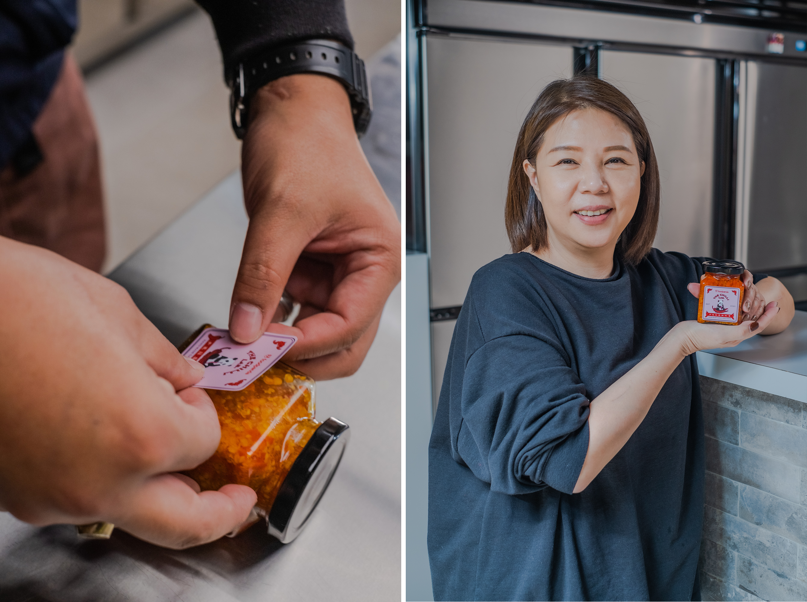 眼前這瓶紅紅橙橙的辣椒醬顏色鮮艷,光看賣相已讓人垂涎欲滴。Coba 表示,他們家的辣椒醬最特別之處,在於辣椒與蒜蓉的比例,加上利用慢火低溫炒,保留了辣椒與蒜蓉的香氣與辣度,「辣椒與蒜頭都是爸爸媽媽去街市親手挑選,因為要自己拿上手,才會知道辣椒的狀態如何,還要挑選大小合適的蒜頭,所以不能假手於人。」一家人分工合作:從事廣告、品牌推廣的 Coba 負責市場策劃;父母則負責製作辣椒醬,擔當品質把關。一瓶辣椒醬的背後,其實代表的是一家人的心血。