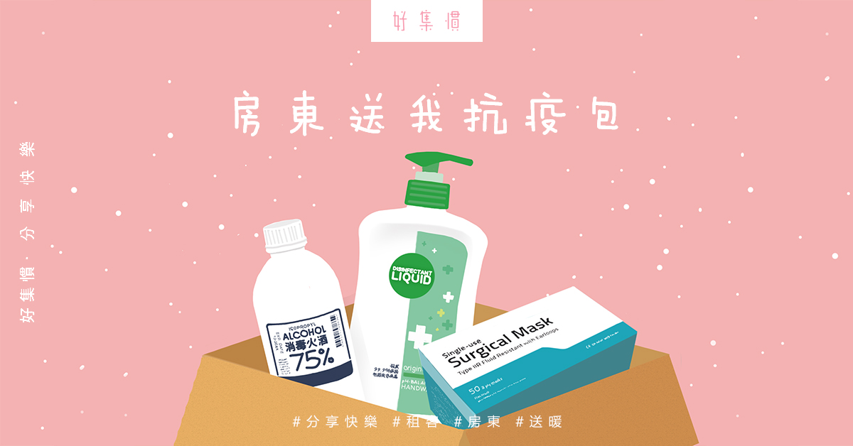 正當我們以為她會一直堅持到疫情完結 (不是說笑,她真的有可能做到),卻收到她的短訊——「房東送了抗疫包給我,隔離屋也有,口罩還是不同顏色的。」原來在疫情稍有回落的時候,她曾外出舒展筋骨,甫打開門便看到門上掛著一個白色膠袋。裡面竟是房東準備的抗疫三寶——口罩、消毒酒精和洗手液,還有一張祝她身體健康的便條。最令人感到暖心的是友人收到的口罩是粉粉嫩嫩的顏色,而同層由一對老夫婦居住的單位,口罩顏色則是暗紅色的。