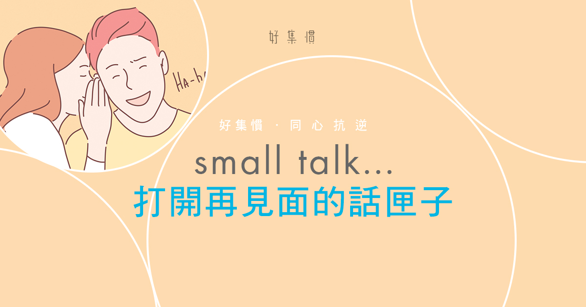 疫情漸漸好起來了,可以見朋友了!忘記了怎樣開始對話嗎?不如從small talk開始?所謂small talk不是細聲講大聲笑或是講人是非,而是在聊天吹水之餘,把對談話變得更有深度和趣味。吹水也是門學問呢!美國心理學家Samantha Boardman曾在blog寫過:讓人思考和富有深度的對話才會使人快樂,「今天天氣很好啊!」英式開場白,其實有點是廢話⋯⋯除非你是林超英。