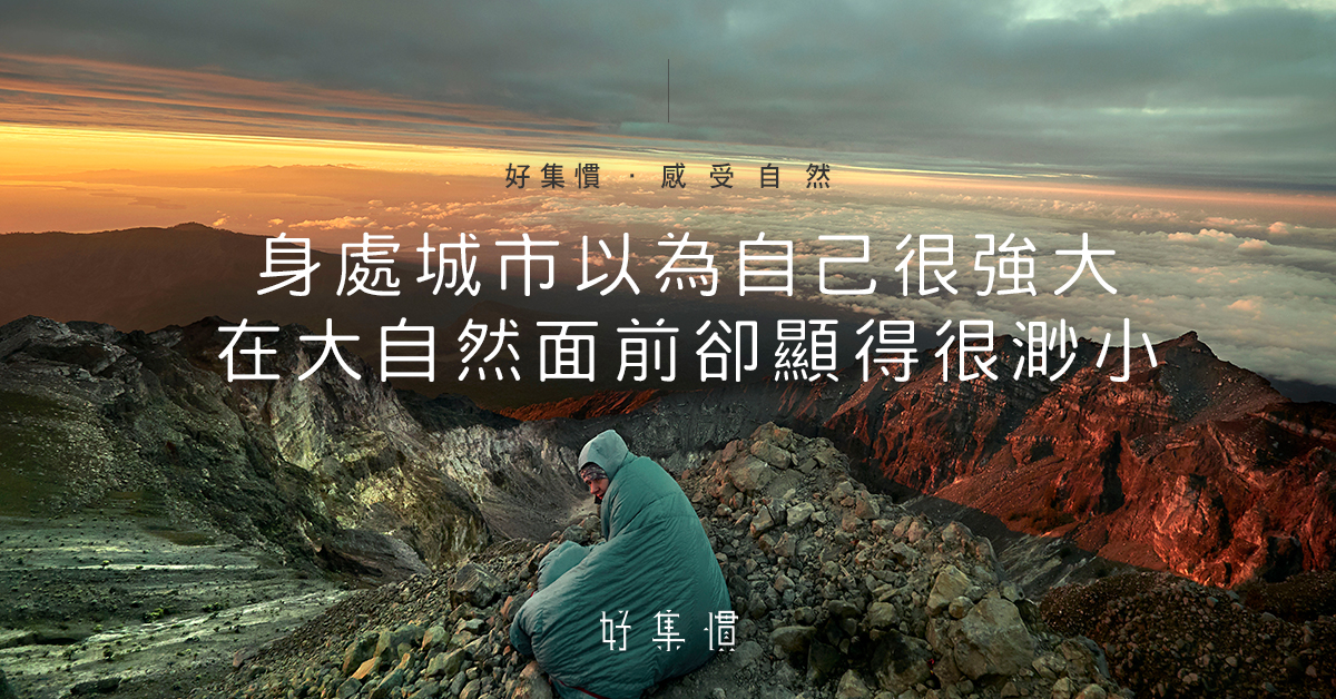 大自然是強悍的,也是值得敬佩的。他在山上拍攝了一張照片,是同行人一個人坐在山上看日出,身體用睡袋包裹著。「我想表達在大自然面前,我們要學會謙卑,意識到自己是孤獨。」