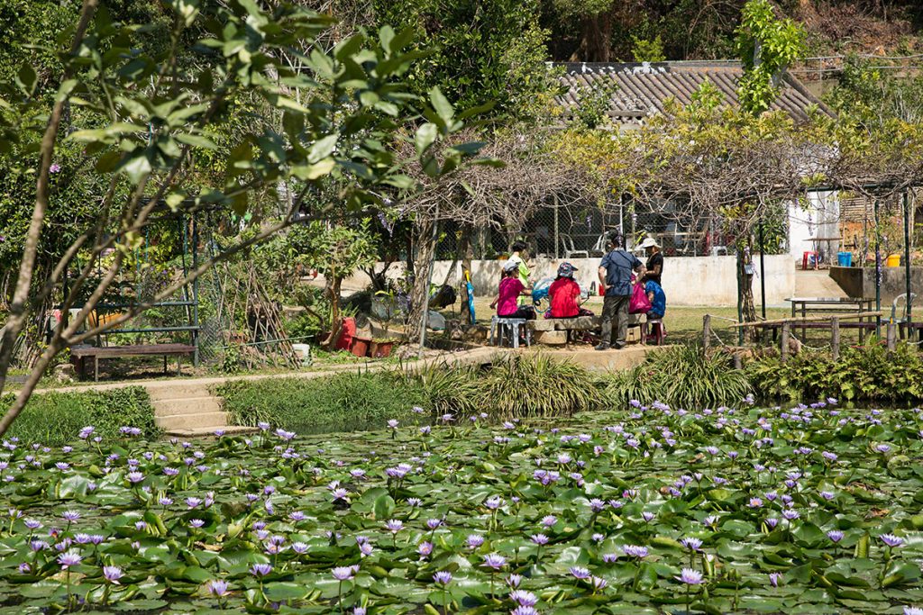 沿着清快塘村路牌,接上山路。沿途好走,路中有一涼亭,可遠眺青馬大橋,無敵打卡位。約四十五分鐘,便可去到清快塘村喜香農莊了。莊主傅裕霖,熱愛種植。未入農莊,便見一個紫色睡蓮河塘,接着又是一個蓮花池,再往裏走,又見一束一束山櫻,感覺就像桃花源記!「這裏是我的祖屋,父母親一直住在這裏,2002年我把屋前的荒地變成蓮花池,又在屋後種菜田,我愛種植嘛。」傅生呵呵地笑說。難得有美景,又在蓮花池旁做了數個攀藤植物花棚,再放上桌椅,便可油油然坐在這裏看花曬太陽,賞心樂事。忽發奇想,何不將祖屋變成農莊,為行山人士加油打氣?