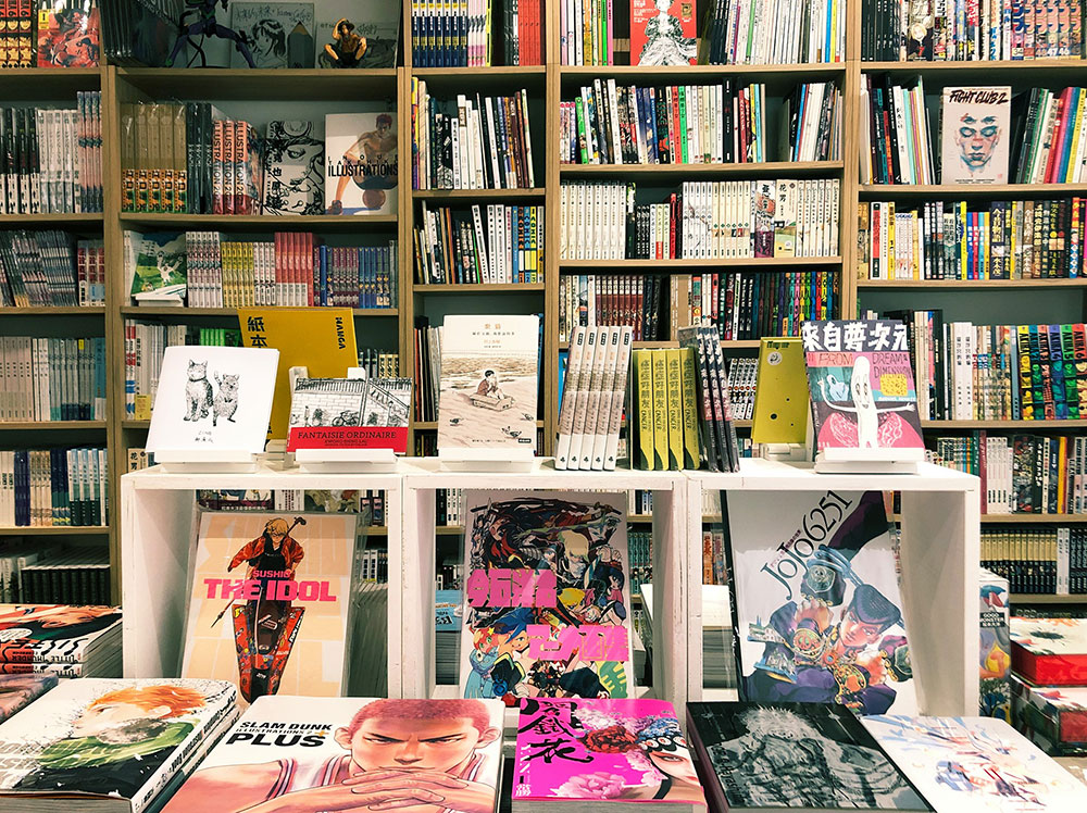 店內一大個書架放滿各式漫畫,既有新書也有舊漫畫,一些只看不賣,一些只賣不看(18禁嘛),唯一的共通點,都是二人最喜歡的漫畫,「希望我們喜歡的作品,你們也會喜歡。」又像那套《SLAM DUNK》、《消防員的故事》或松本大洋的《Sunny》都是自己收藏,千金不賣。除了日本漫畫外,也有不少、港台漫畫集,「我們真的想人們知道本地也有很好的漫畫家。」