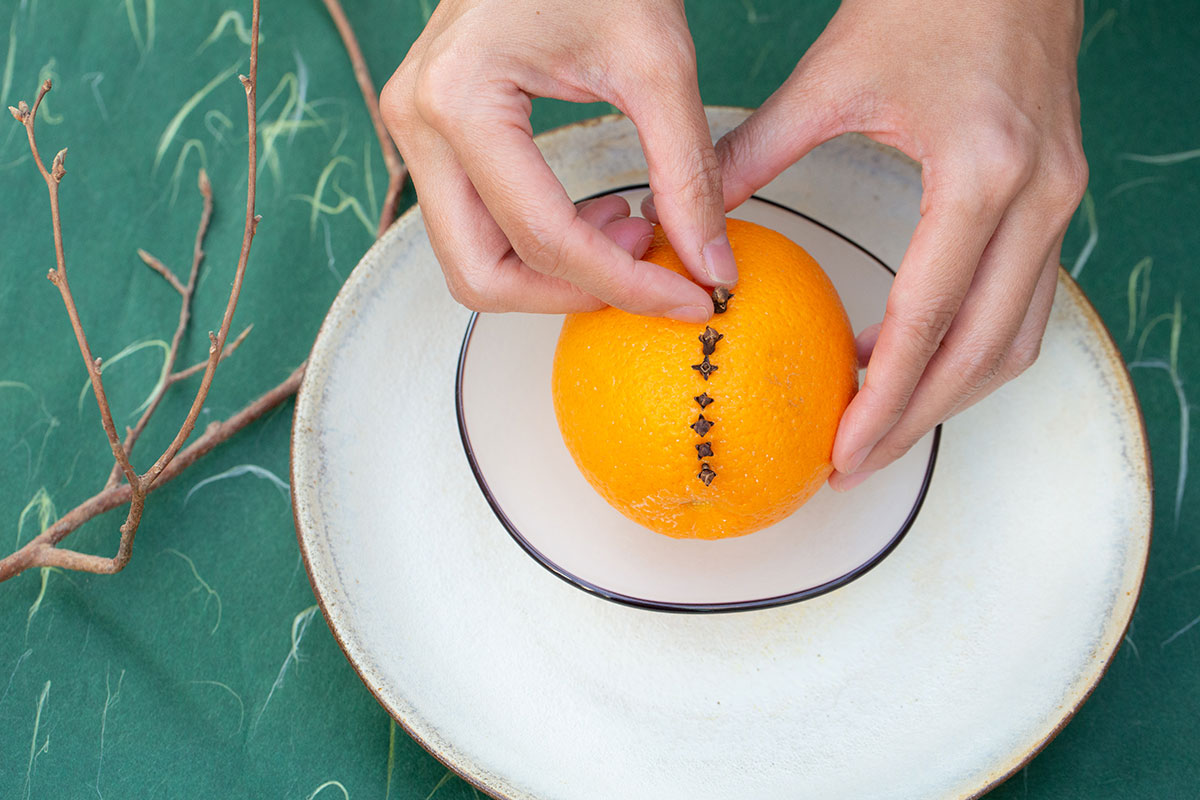這是外國人最愛的聖誕香氣之一,製作簡單,只需要買一包丁香香料插在橙上,橙油會釋出丁香的香氣,清淡中有點香料氣息,很適合一個人。理論上,丁香插得越多氣味越濃,只是怕你有密集恐懼症呢。