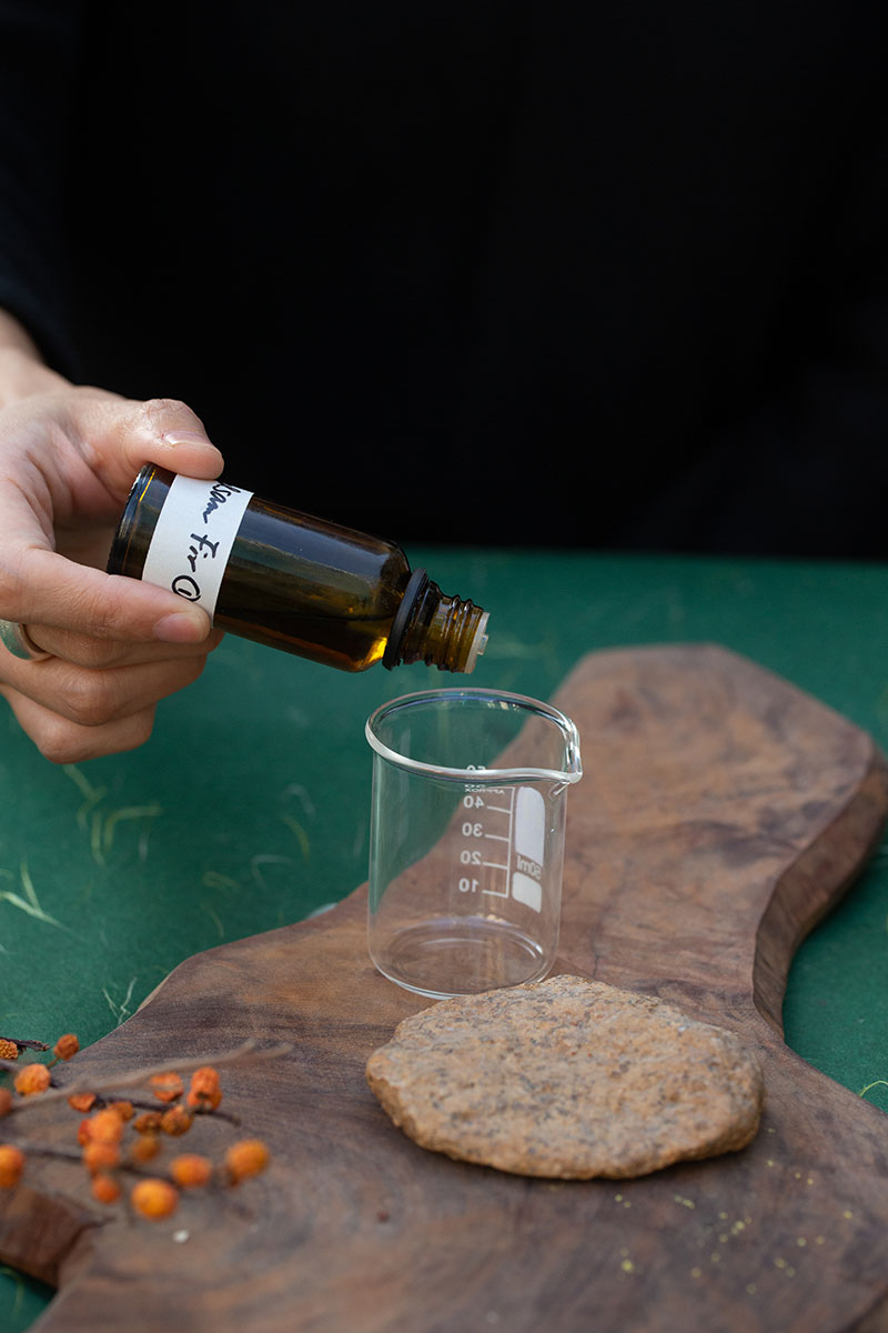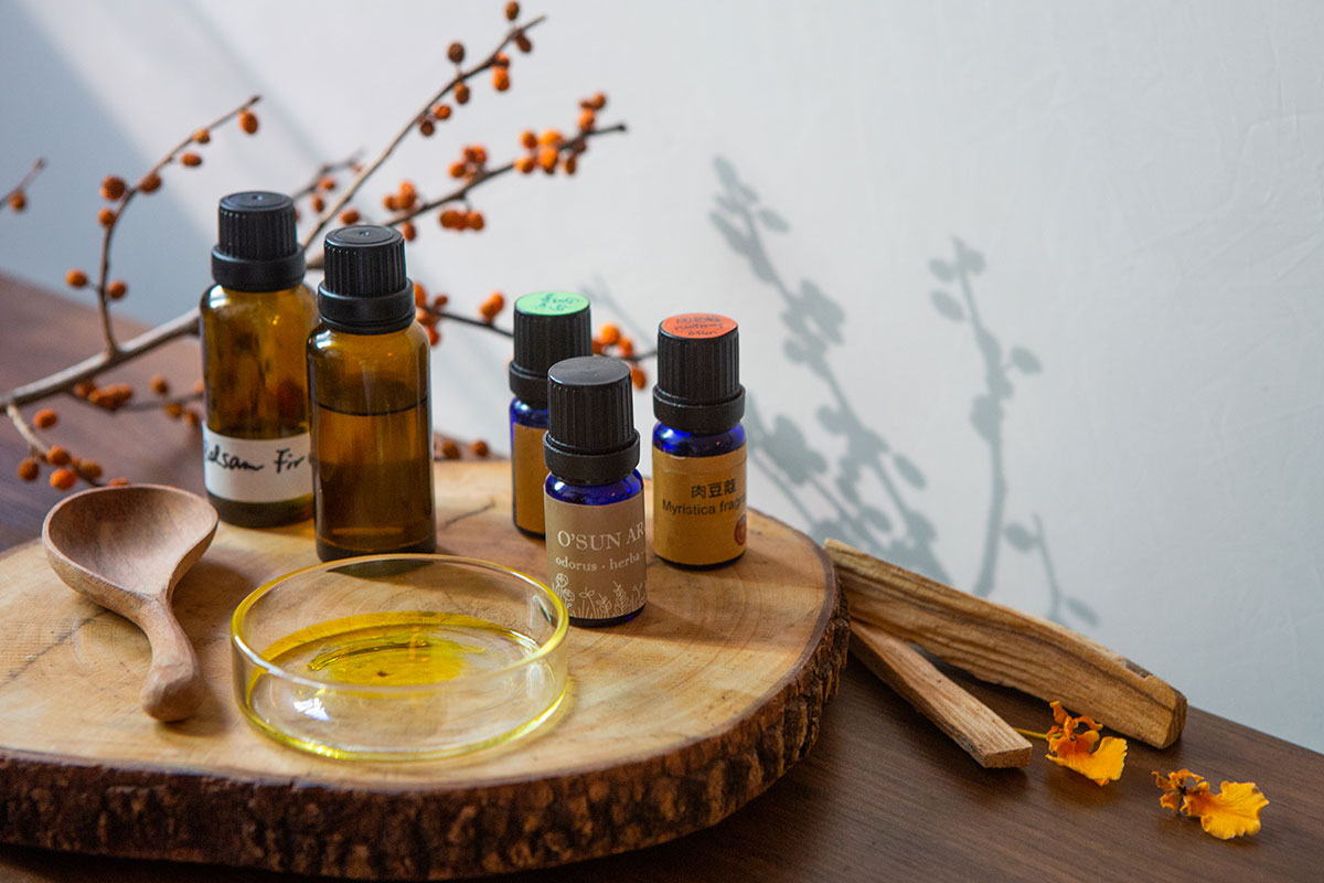 這時,笑喜又說了一個故事:最近跟音樂人江逸天演唱會《I am afraid of 》策劃香氣,別開生面——演唱會由江逸天對恐懼的反思而起,以音樂、錄影、視像,結合現場演出及香氣,開展一場回溯夢境、探索內心、與自己真誠對話的旅程。笑喜用上了古巴香脂、香脂冷杉、佛手柑去展開旅程;接着抺上乳香,讓人心情平靜而安穩;最後以溫暖的安息香引領人們回到內心。