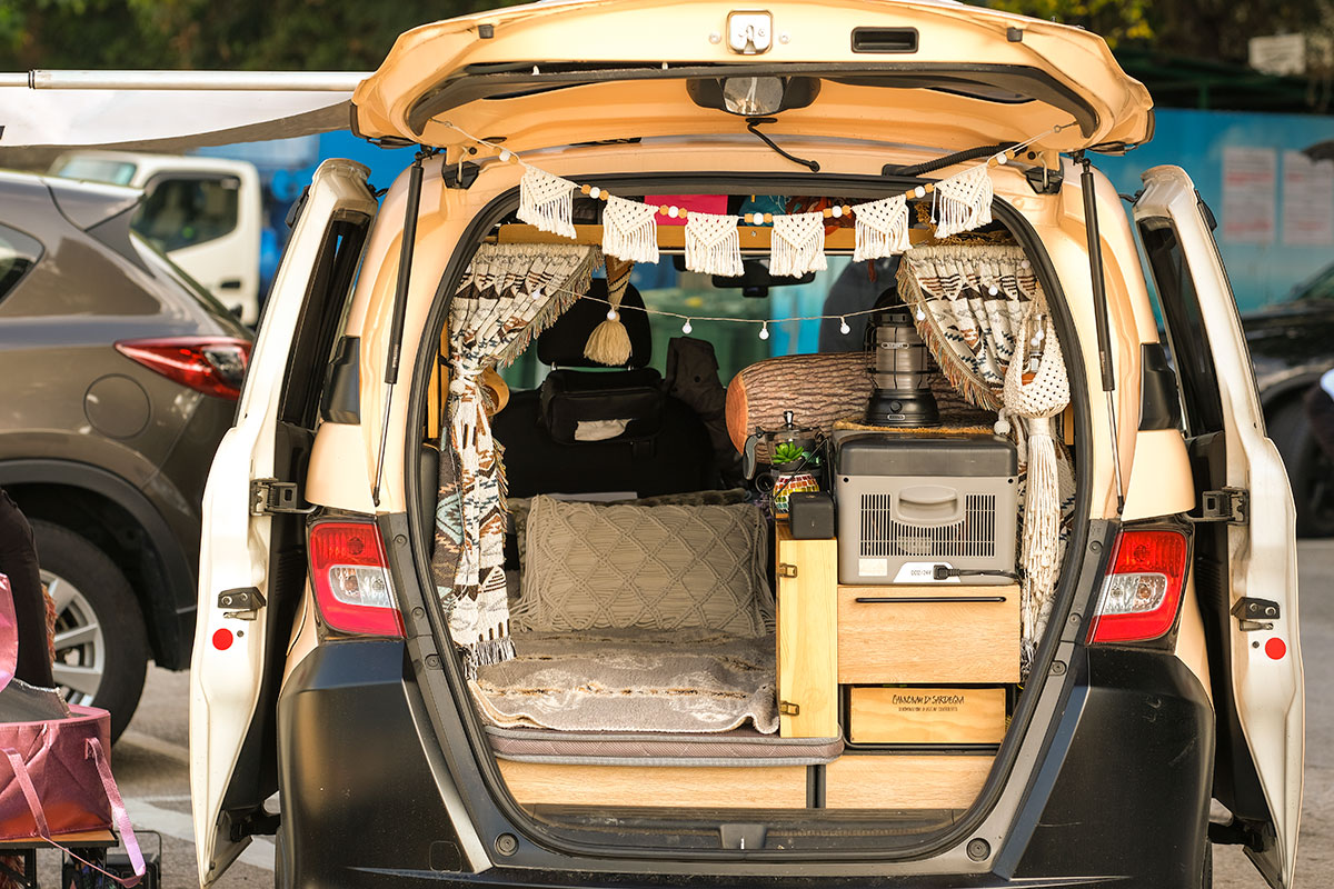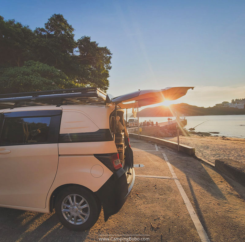 陽光、沙灘、海浪,乘著涼風吃串燒、壽喜燒,千想萬想,誰料到在香港可以有這樣的一幅景致?「『香港真係好靚』不是口號,而是事實,要不是玩車中泊,根本不知道香港有這麼多隱世美景,每次放照片上網,都有人以為我身處外地,其實美好事物一直近在咫尺,視乎你是否用心發現過。很多香港人鍾意打卡、呃 like,沒有真切地欣賞過這個地方,我玩車中泊就是不想走馬看花,而是停下來好好感受。」擁有兩年車中泊資歷的 Bobo 分享道。她是自由工作者,擅長設計,沉醉露營與大自然,連去旅行都以行山、露營為主。疫情被逼留港,營地相繼關閉,為著昔日探索自然的美好,決定一試車中泊。「車中泊源自日本,當地人玩法多變,不少人的車廂內打造得美輪美奐,這兩年我發現香港人的車中泊也有自家 style,有的著重車廂設計,有的著重當中享受,各自各精彩。」她說玩車中泊門檻不高,除了車子本身,其他裝備幾千至兩萬元內不等,自己組裝更過癮。
