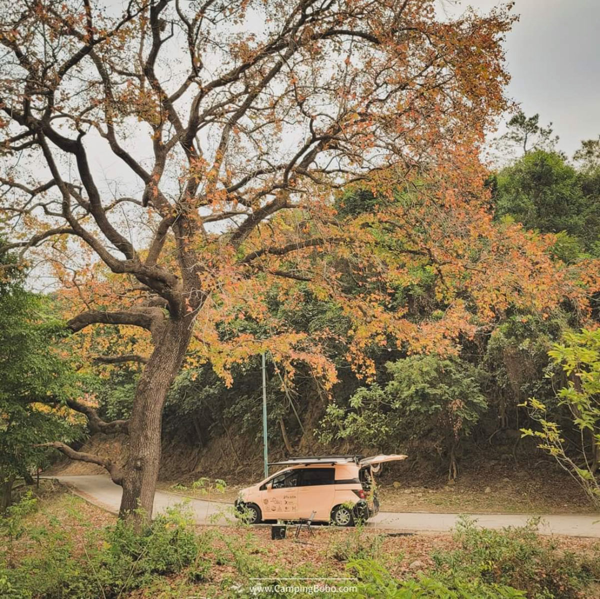 這張紅葉下的車中泊照片,引來不少網民查詢,很多人還以為 Bobo 疫情下飛了轉日本。
