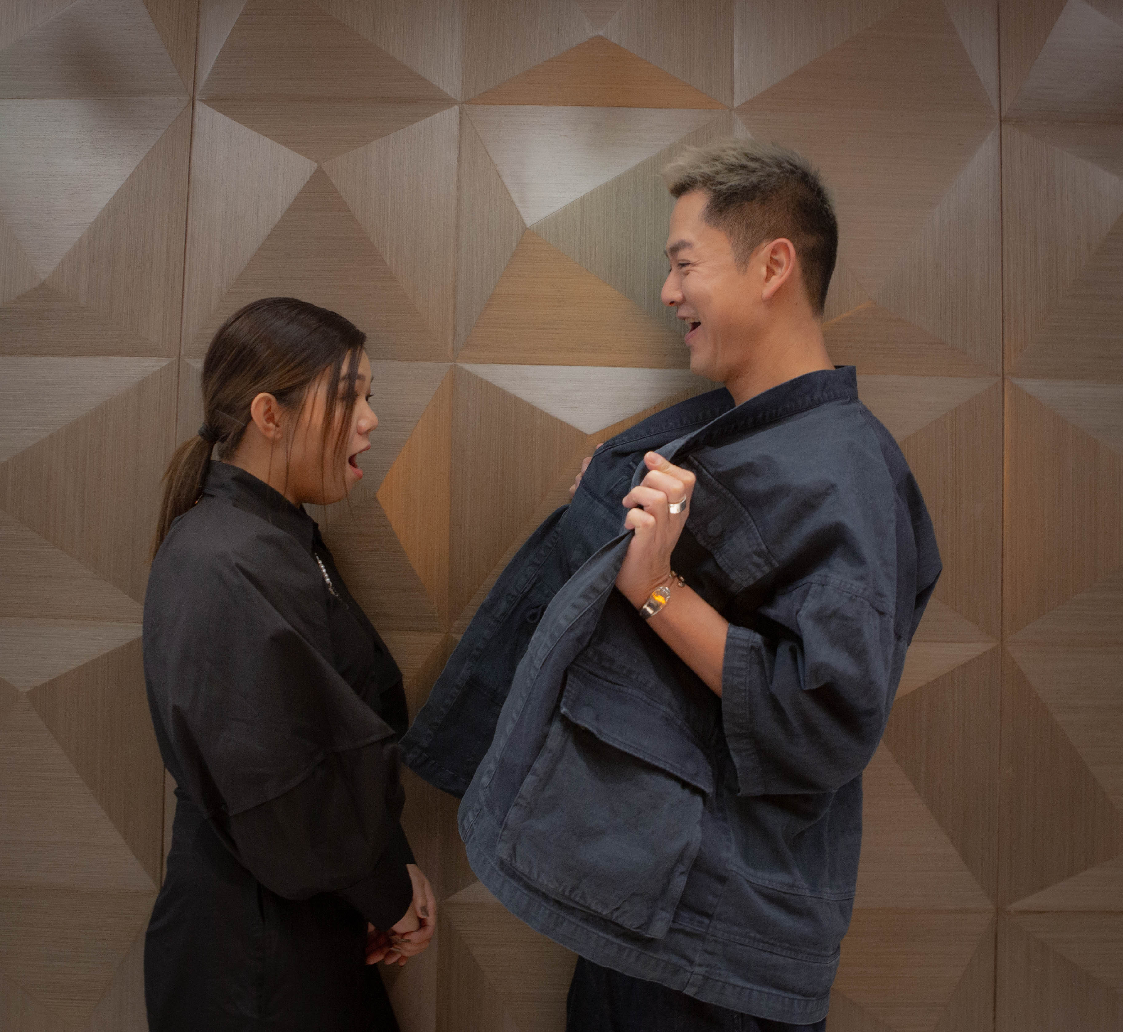 「又是扮傾偈。好難呀。」聽到攝影師的指示,鄧小巧看著藍奕邦,面有難色。「經常都傾偈了。」藍奕邦說,「昨晚才見過面。」相識13年,這對年齡相差11年的老友,除了打麻雀要約齊4人之外,很少特意約出來見面,亦極少刻意計劃行程。更多的,是有如訪問之前兩人坐在化妝台前,捧著飯盒吃遲到的午飯,有一搭沒一搭的漫不經心。「我喜歡和她相處,因為不需要多餘⋯⋯好直接。」藍奕邦道,「同住又試過⋯⋯」「肉帛相見!」鄧小巧大力拍向藍奕邦,「才沒有!」藍急忙澄清。不論是於錦田的村屋,銅鑼灣的酒吧,抑或加拿大的雪夜,二人相處,乃至人生經歷,充斥著巧合的平常,總是意外交纏,或說是緣份。與其說是有種老朋友,不如說是有種家人。