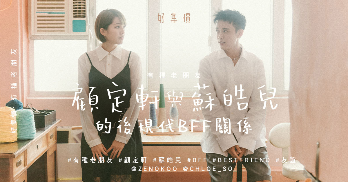有看過《Yes!》的九十後,也許都記得顧定軒和蘇皓兒在校花校草時期的曝光率,同樣青澀瘦削,臉上掛著靈動的大眼。在周年音樂會上認識,後來公司安排二人以組合般的姿態工作,曾到大尾篤影聖誕燈飾,甚至在伊利沙伯體育館的活動上合唱《海闊天空》,這些畫面像如數家珍般被 Chloe一一列出。年少時他們曾仰天說過自己的夢想,Zeno 說自己愛唱歌,Chloe 則偏好演戲,但又有趣地,這對好友拿了對方的計劃書作個人起步點:前者花了好些年拍戲,後者以女團身份留下印象。2017 年上映的《藍天白雲》是顧定軒首套上畫的電影作品,首演的優先場當然少不了對方:「那天許多朋友都在場,但她是唯一一個眼淚爆發的。我在台上本來準備要說『Hello 我是顧定軒』,但因為看到她,我早就哽咽了。」到了 Chloe 從韓國回港,Zeno 又成了歌迷會長老:「她第一次在皇室堡的表演,我也有去,我現場聽她唱《Candy Ball》!」到兩年前的電視劇《那些我愛過的人》再聚首,發覺默契如初。