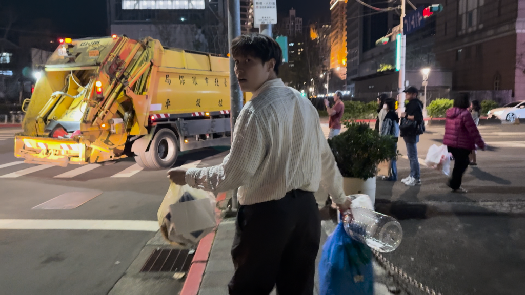 剛剛在台北,我體驗了當地著名的「追垃圾車」生活。他們的家居垃圾分為三類:一般垃圾、資源回收與廚餘,三輛垃圾車會同時到來。我一聽到熟悉的「給愛麗絲」音樂,就趕快拿着分類好的垃圾衝下樓。到達收集點時,街坊們已整齊排好隊伍,畫面井然有序,直到我倒廚餘的時候⋯⋯廚餘需倒入深而大的桶裡,並將膠袋拆開。我事先聽從本地人建議,將廚餘用雙層膠袋包好冷藏在冰格中以防發臭,果然是一個聰明的方法。但當我手忙腳亂地打開那個像冰磚一樣的廚餘袋時,一不小心滑手,那塊半結冰的廚餘硬塊從半米高處跌進大桶,濺起一片濕黏的液體,正中我臉上。台灣的廚餘一般用作餵豬,而現在的我竟然慘成了那頭豬⋯⋯我閉氣、強忍呼吸,努力不去聞那混合各家廚餘的芬芳氣味。但現在回想,那正正是旅居澀中帶甜的滋味。