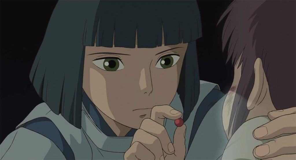 白龍打開用葉子包裹的飯糰,取出一顆遞給千尋,吃了一口她便狼吞虎噬把飯糰塞進口裏,眼睛也冒出豆大的淚珠,最後更直接放聲大哭。然後,白龍再對她說:「辛苦你了,再吃吧!」面對壓力時,一句關懷、一份簡單直接的心意,讓對方感覺自己並不是孤身作戰,用眼淚把委屈和疲累蒸發掉。擦乾淚水,又能勇敢重新出發,因為知道一直有人在身後支持自己。