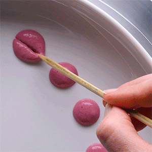 難度高一點的,就是用羮放一點醬汁在盤子中間,再用玻璃杯、鍋底等輕壓,之後垂直拿開;或用帶鋸齒或尖頭的餐具,如刀、叉子或竹籤,在醬汁上勾畫,配合食物位置從不同角度「下筆」。