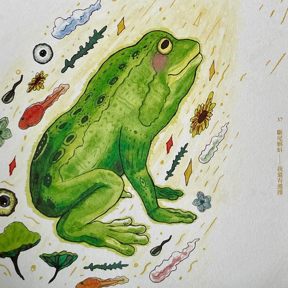 其中一個:蝌蚪因為自己的缺失,錯過了一個可以奔向美好未來的機會,他不斷自責,甚至想就此放棄人生,直至⋯⋯暫且不「劇透」了,故事還是你親自細味好。但可以分享的是,人也是常常如此呢。我們總在做錯一次決定,或犯了一次錯後,不斷責備自己,又會不斷回溯那次的經驗,後悔自己若那時不怎怎怎今天便不會落得如此下場等等。