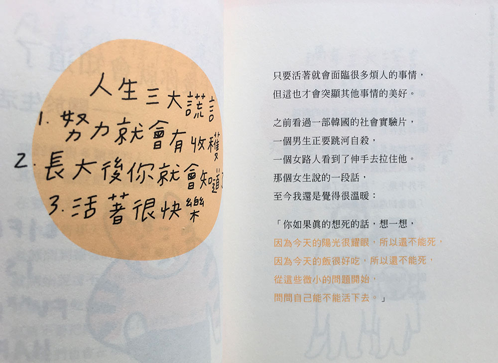 長大後,我們對「生活」的了解多了一點。回頭才發現,從小到大被騙過不少。除了母親會儲起新年利是錢外,dooing 說,人生有三大謊言:「努力就會有收穫、長大後你就會知道了、活著很快樂。」聽起上來好直接得很殘酷,但讀著讀著,不知為何卻反而有種窩心的感覺。